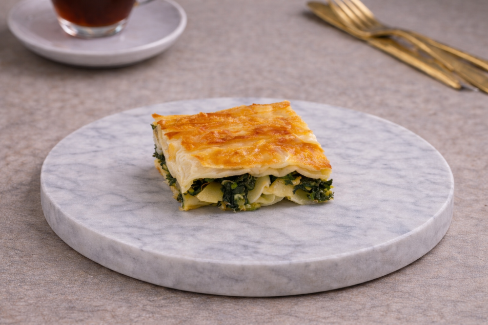 Lezzet profili açısından Ispanaklı Boşnak Böreği (Pişmiş), çok yoğun baharatlı ya da baskın yağlı bir ürün değildir. Ispanağın doğal sebze karakteri ön plandadır; hamur ve yağ dengesi ise bunu destekleyen bir çerçeve oluşturur. Bu sayede ürün hem hafif algılanır hem de doyurucu kalır. Özellikle sebze bazlı ürünleri tercih eden misafirler için menü içinde daha erişilebilir ve düzenli tekrar sipariş alabilecek bir seçenektir.